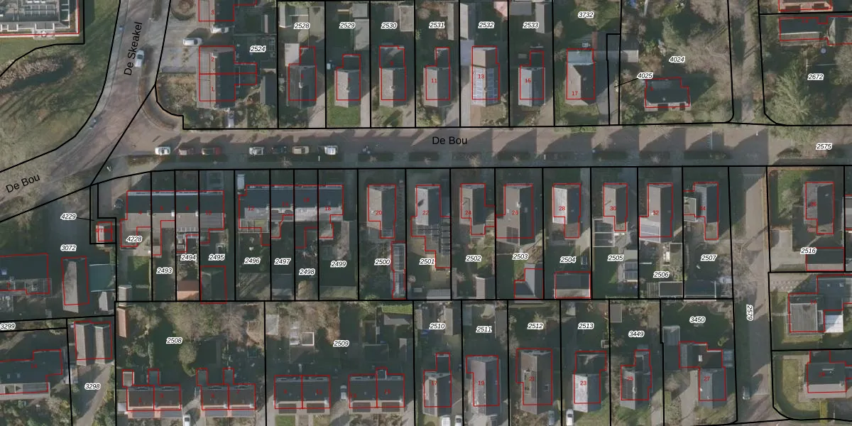 Gebruik de zoekbalk of klik op een perceel voor informatie over de adressen binnen dit perceel.