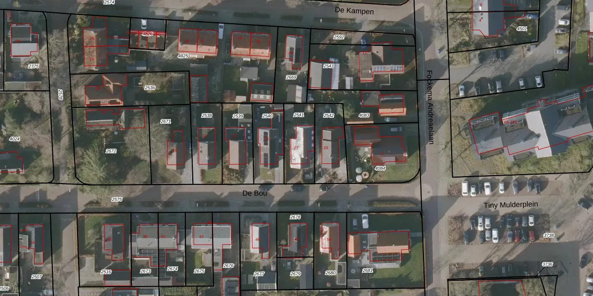 Het perceel waarop De Bou 27 staat heeft een oppervlakte van 281 m². Dit is een middelgroot perceel. De perceeloppervlakte wordt geregistreerd door het Kadaster. Gedetailleerde informatie over de maten van dit perceel kunt u vinden in het rapport Kadastrale kaart met maatvoering van De Bou 27.