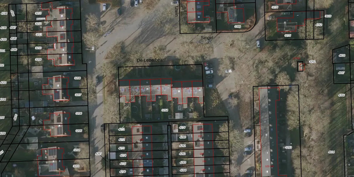 Het perceel waarop De Letterbeam 12 staat heeft een oppervlakte van 1537 m². Dit is een zeer groot perceel. De perceeloppervlakte wordt geregistreerd door het Kadaster. Gedetailleerde informatie over de maten van dit perceel kunt u vinden in het rapport Kadastrale kaart met maatvoering van De Letterbeam 12.