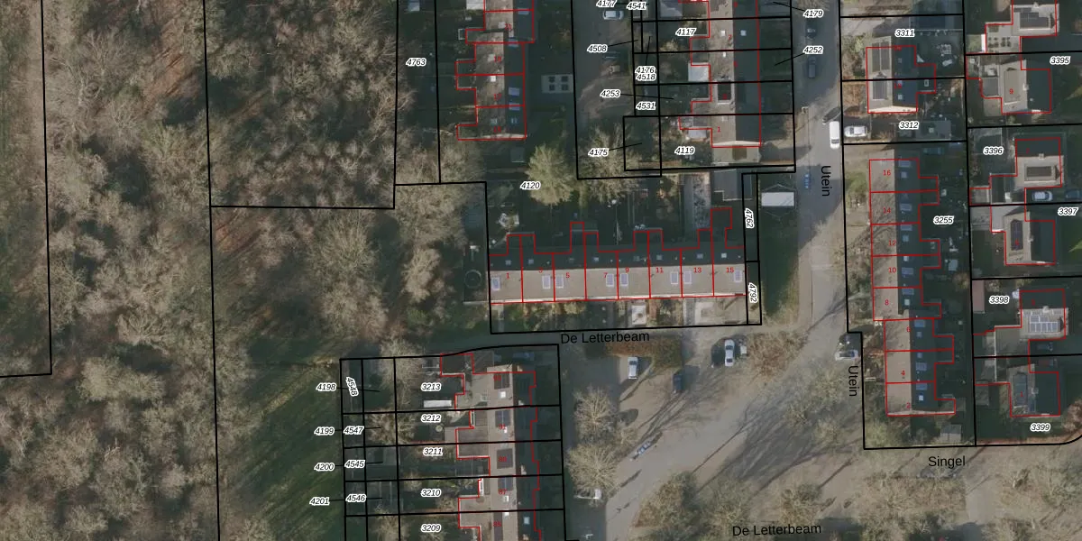 Het perceel waarop De Letterbeam 3 staat heeft een oppervlakte van 2851 m². Dit is een zeer groot perceel. De perceeloppervlakte wordt geregistreerd door het Kadaster. Gedetailleerde informatie over de maten van dit perceel kunt u vinden in het rapport Kadastrale kaart met maatvoering van De Letterbeam 3.