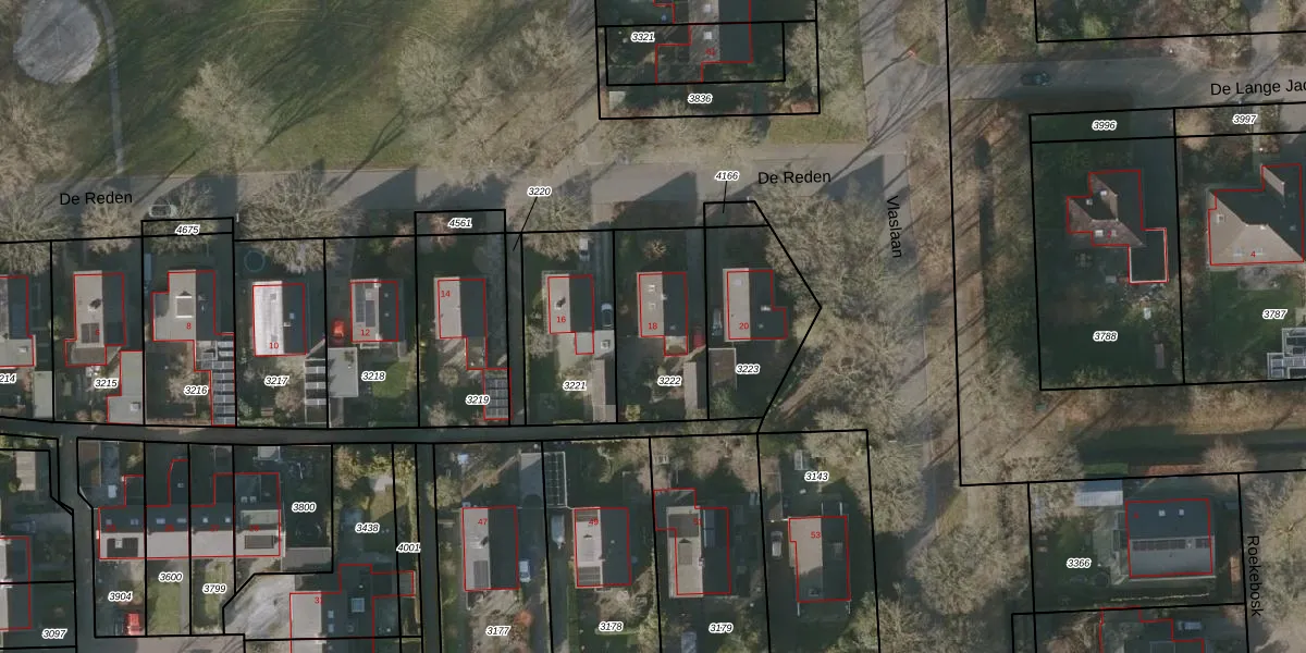 Gebruik de zoekbalk of klik op een perceel voor informatie over de adressen binnen dit perceel.
