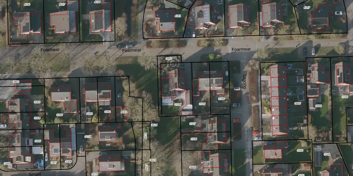 Gebruik de zoekbalk of klik op een perceel voor informatie over de adressen binnen dit perceel.