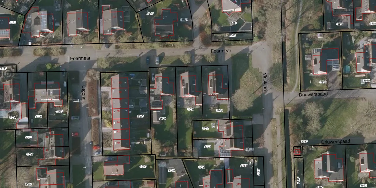 Het perceel waarop Foarmear 18 staat heeft een oppervlakte van 565 m². Dit is een groot perceel. De perceeloppervlakte wordt geregistreerd door het Kadaster. Gedetailleerde informatie over de maten van dit perceel kunt u vinden in het rapport Kadastrale kaart met maatvoering van Foarmear 18.