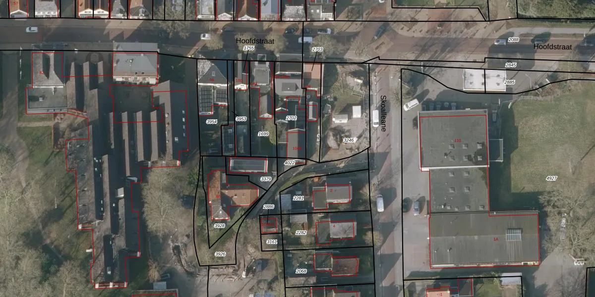 Het perceel waarop Hoofdstraat 104-B staat heeft een oppervlakte van 335 m². Dit is een groot perceel. De perceeloppervlakte wordt geregistreerd door het Kadaster. Gedetailleerde informatie over de maten van dit perceel kunt u vinden in het rapport Kadastrale kaart met maatvoering van Hoofdstraat 104-B.