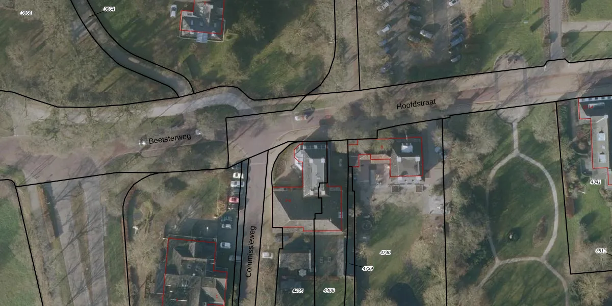 Het perceel waarop Hoofdstraat 4 staat heeft een oppervlakte van 830 m². Dit is een groot perceel. De perceeloppervlakte wordt geregistreerd door het Kadaster. Gedetailleerde informatie over de maten van dit perceel kunt u vinden in het rapport Kadastrale kaart met maatvoering van Hoofdstraat 4.