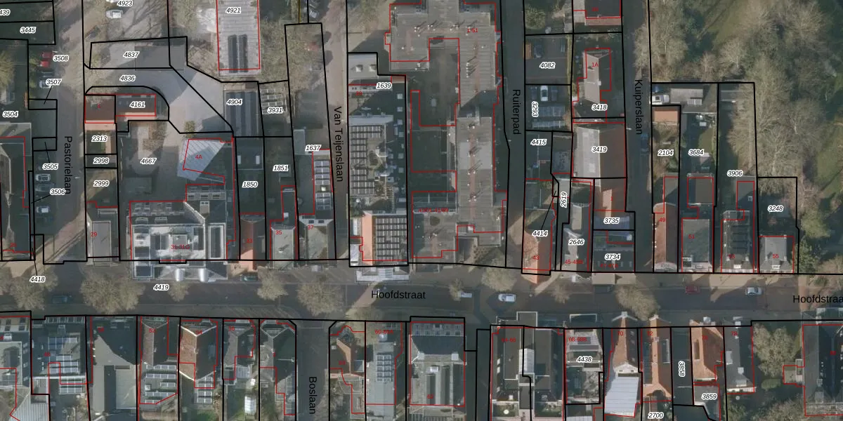 Het perceel waarop Hoofdstraat 41-01 staat heeft een oppervlakte van 2243 m². Dit is een zeer groot perceel. De perceeloppervlakte wordt geregistreerd door het Kadaster. Gedetailleerde informatie over de maten van dit perceel kunt u vinden in het rapport Kadastrale kaart met maatvoering van Hoofdstraat 41-01.