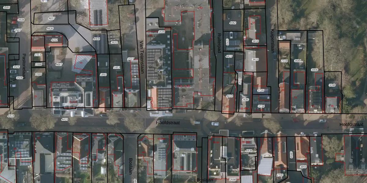 Het perceel waarop Hoofdstraat 41-05 staat heeft een oppervlakte van 2243 m². Dit is een zeer groot perceel. De perceeloppervlakte wordt geregistreerd door het Kadaster. Gedetailleerde informatie over de maten van dit perceel kunt u vinden in het rapport Kadastrale kaart met maatvoering van Hoofdstraat 41-05.