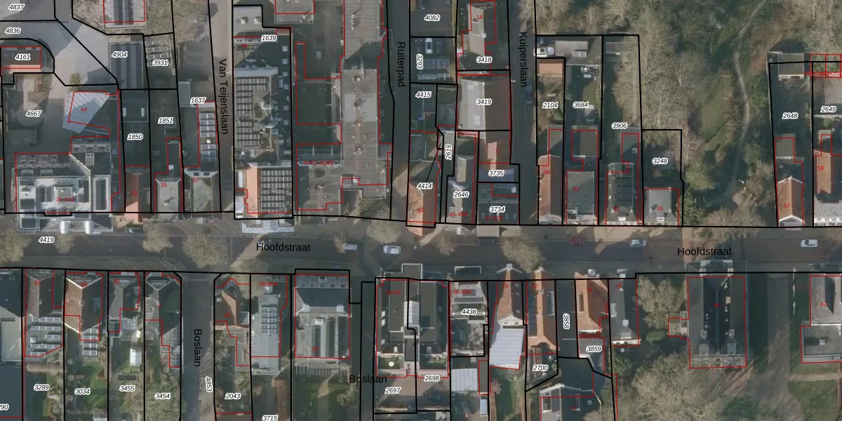 Het perceel waarop Hoofdstraat 43 staat heeft een oppervlakte van 249 m². Dit is een middelgroot perceel. De perceeloppervlakte wordt geregistreerd door het Kadaster. Gedetailleerde informatie over de maten van dit perceel kunt u vinden in het rapport Kadastrale kaart met maatvoering van Hoofdstraat 43.