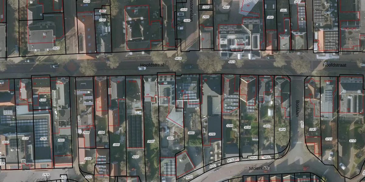 Het perceel waarop Hoofdstraat 48 staat heeft een oppervlakte van 656 m². Dit is een groot perceel. De perceeloppervlakte wordt geregistreerd door het Kadaster. Gedetailleerde informatie over de maten van dit perceel kunt u vinden in het rapport Kadastrale kaart met maatvoering van Hoofdstraat 48.