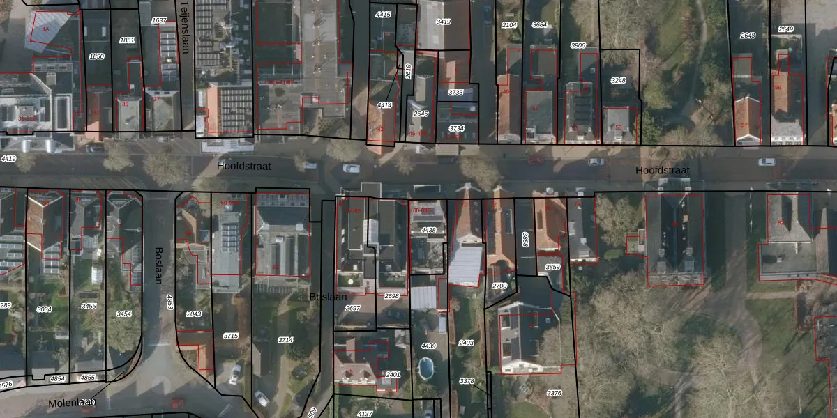 Het perceel waarop Hoofdstraat 68 staat heeft een oppervlakte van 163 m². Dit is een middelgroot perceel. De perceeloppervlakte wordt geregistreerd door het Kadaster. Gedetailleerde informatie over de maten van dit perceel kunt u vinden in het rapport Kadastrale kaart met maatvoering van Hoofdstraat 68.