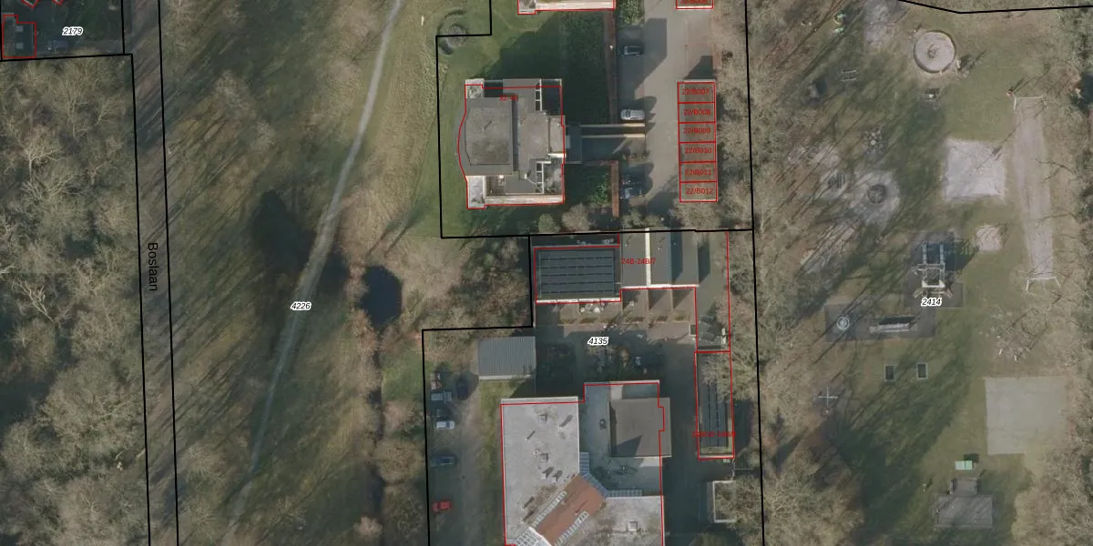 Het perceel waarop het adres ligt is BSZ00-B-4135. De afkorting 'BSZ00' staat voor kadastrale gemeente Beetsterzwaag. De gemiddelde perceelgrootte in Beetsterzwaag is 1,0 ha. Dit perceel is kleiner: de perceeloppervlakte bedraagt 3790 m². Het grootste perceel in de kadastrale gemeente is 65,5 ha. Het kleinste perceel heeft een oppervlakte van 0 m². Er zijn 12 adressen aanwezig op het perceel. De laatste wijziging in het de Basisregistratie Kadaster (BRK) was op 21-09-2001.