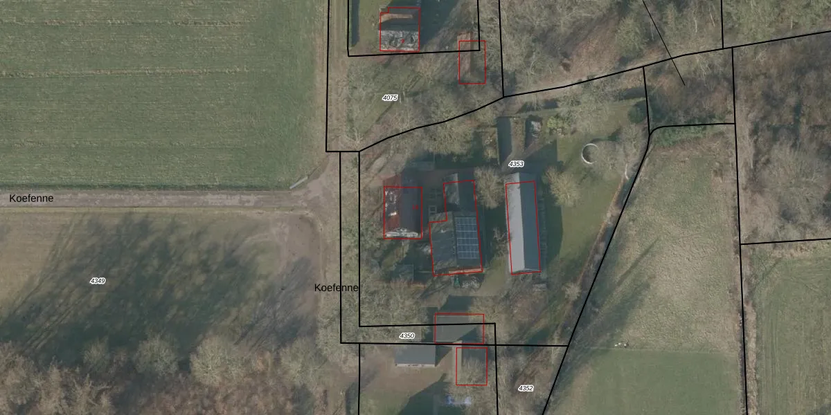 Het perceel waarop Koefenne 10 staat heeft een oppervlakte van 3140 m². Dit is een zeer groot perceel. De perceeloppervlakte wordt geregistreerd door het Kadaster. Gedetailleerde informatie over de maten van dit perceel kunt u vinden in het rapport Kadastrale kaart met maatvoering van Koefenne 10.
