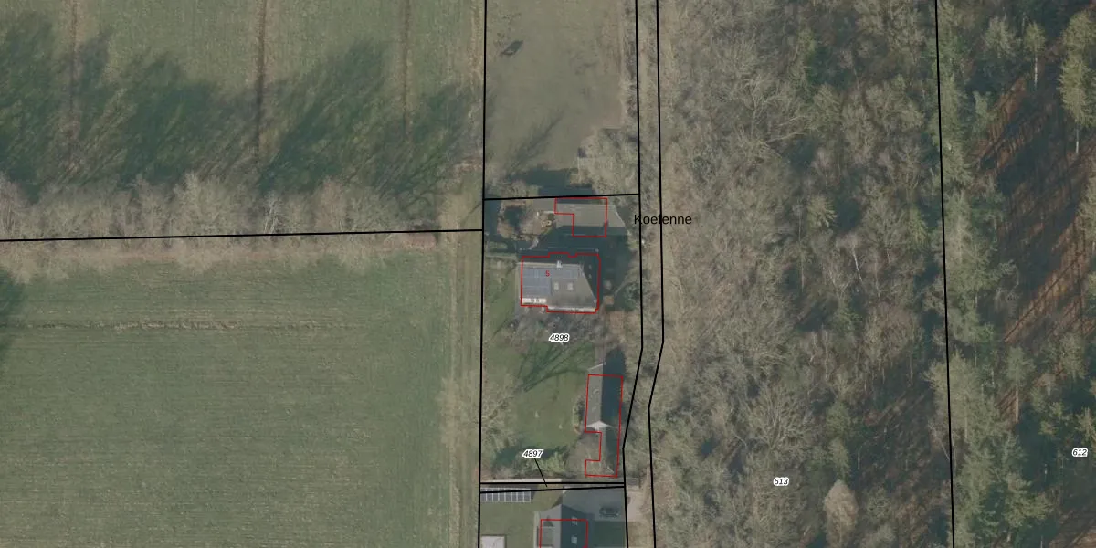 Het perceel waarop Koefenne 5 staat heeft een oppervlakte van 1390 m². Dit is een zeer groot perceel. De perceeloppervlakte wordt geregistreerd door het Kadaster. Gedetailleerde informatie over de maten van dit perceel kunt u vinden in het rapport Kadastrale kaart met maatvoering van Koefenne 5.