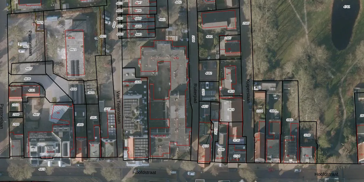 Het perceel waarop Ruiterpad 27 staat heeft een oppervlakte van 2243 m². Dit is een zeer groot perceel. De perceeloppervlakte wordt geregistreerd door het Kadaster. Gedetailleerde informatie over de maten van dit perceel kunt u vinden in het rapport Kadastrale kaart met maatvoering van Ruiterpad 27.