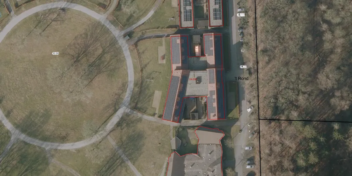 Het perceel waarop 't Rond 19-E staat heeft een oppervlakte van 8,3 ha. Dit is een zeer groot perceel. De perceeloppervlakte wordt geregistreerd door het Kadaster. Gedetailleerde informatie over de maten van dit perceel kunt u vinden in het rapport Kadastrale kaart met maatvoering van 't Rond 19-E.