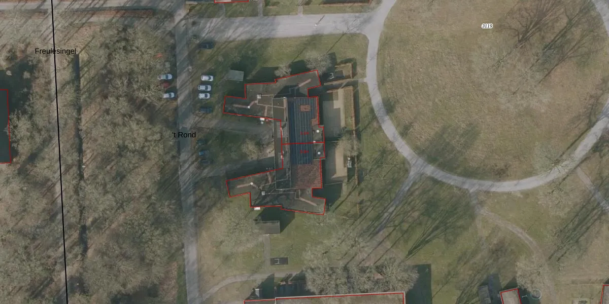 Het perceel waarop 't Rond 3 staat heeft een oppervlakte van 8,3 ha. Dit is een zeer groot perceel. De perceeloppervlakte wordt geregistreerd door het Kadaster. Gedetailleerde informatie over de maten van dit perceel kunt u vinden in het rapport Kadastrale kaart met maatvoering van 't Rond 3.