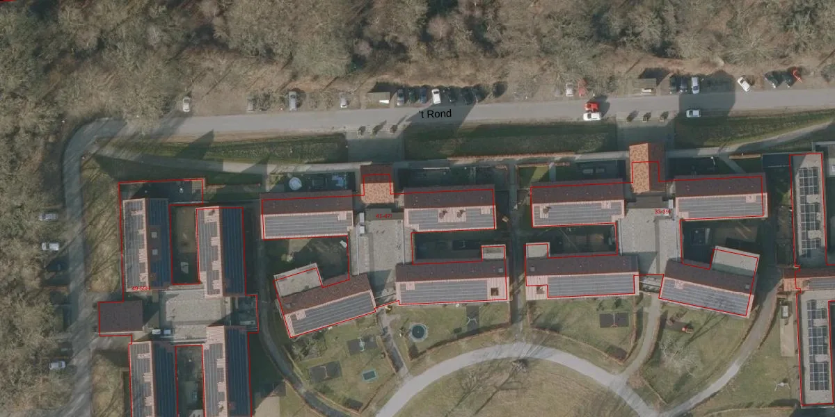 Het perceel waarop 't Rond 41-A staat heeft een oppervlakte van 8,3 ha. Dit is een zeer groot perceel. De perceeloppervlakte wordt geregistreerd door het Kadaster. Gedetailleerde informatie over de maten van dit perceel kunt u vinden in het rapport Kadastrale kaart met maatvoering van 't Rond 41-A.