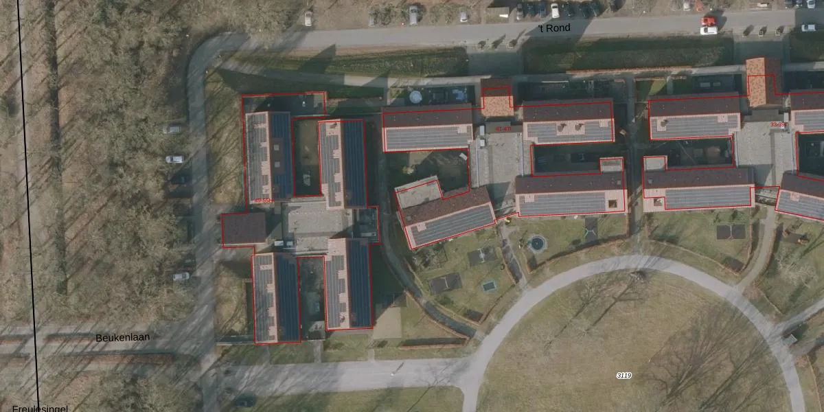 Het perceel waarop 't Rond 45-H staat heeft een oppervlakte van 8,3 ha. Dit is een zeer groot perceel. De perceeloppervlakte wordt geregistreerd door het Kadaster. Gedetailleerde informatie over de maten van dit perceel kunt u vinden in het rapport Kadastrale kaart met maatvoering van 't Rond 45-H.