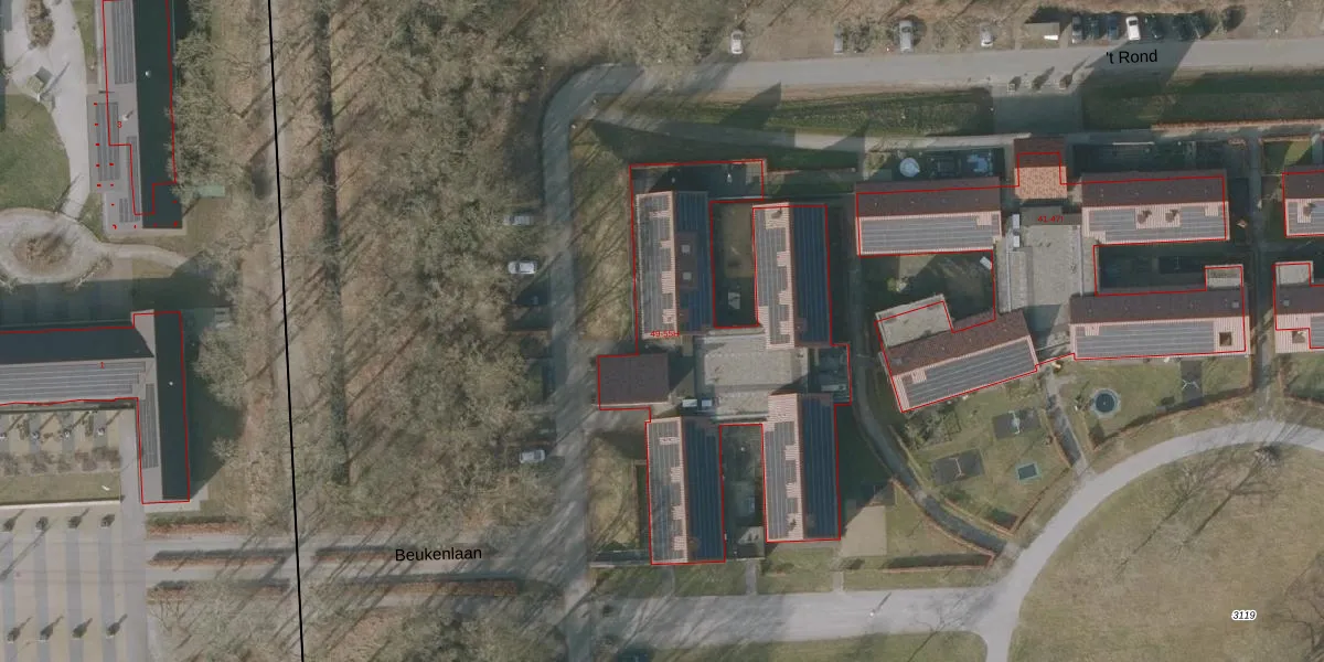 Het perceel waarop 't Rond 49-A staat heeft een oppervlakte van 8,3 ha. Dit is een zeer groot perceel. De perceeloppervlakte wordt geregistreerd door het Kadaster. Gedetailleerde informatie over de maten van dit perceel kunt u vinden in het rapport Kadastrale kaart met maatvoering van 't Rond 49-A.