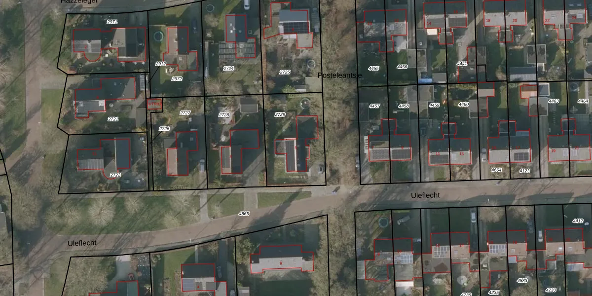 Gebruik de zoekbalk of klik op een perceel voor informatie over de adressen binnen dit perceel.
