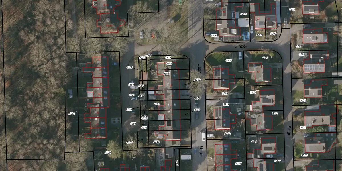 Gebruik de zoekbalk of klik op een perceel voor informatie over de adressen binnen dit perceel.