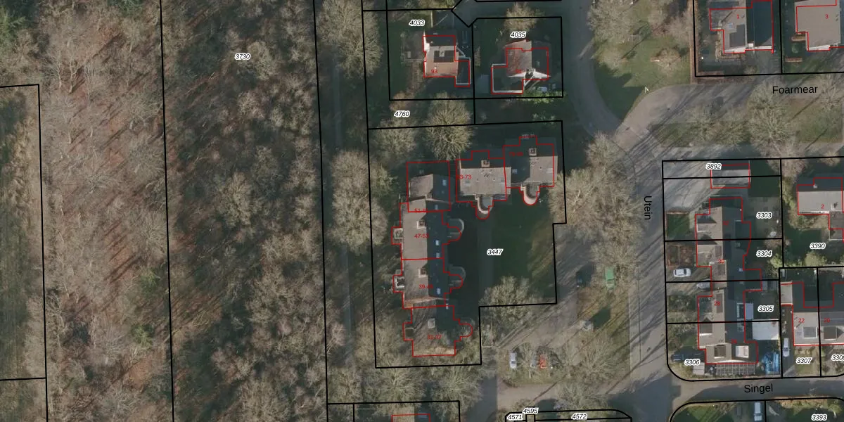 Het perceel waarop Utein 51 staat heeft een oppervlakte van 2279 m². Dit is een zeer groot perceel. De perceeloppervlakte wordt geregistreerd door het Kadaster. Gedetailleerde informatie over de maten van dit perceel kunt u vinden in het rapport Kadastrale kaart met maatvoering van Utein 51.
