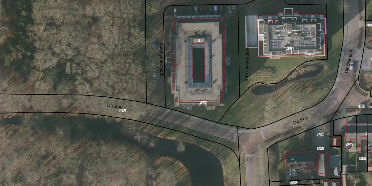 Het perceel waarop Van Lyndenpark 42 staat heeft een oppervlakte van 2333 m². Dit is een zeer groot perceel. De perceeloppervlakte wordt geregistreerd door het Kadaster. Gedetailleerde informatie over de maten van dit perceel kunt u vinden in het rapport Kadastrale kaart met maatvoering van Van Lyndenpark 42.