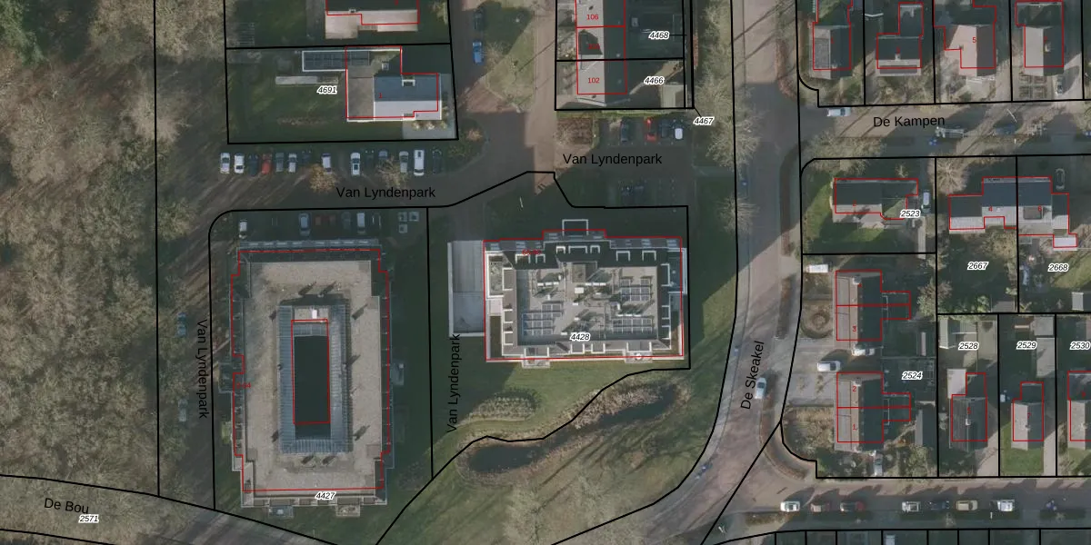 Het perceel waarop Van Lyndenpark 82 staat heeft een oppervlakte van 1906 m². Dit is een zeer groot perceel. De perceeloppervlakte wordt geregistreerd door het Kadaster. Gedetailleerde informatie over de maten van dit perceel kunt u vinden in het rapport Kadastrale kaart met maatvoering van Van Lyndenpark 82.