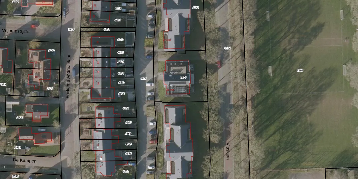 Vlaslaan 43 is gelegen op kadastraal perceel BSZ00B4774. Deze kadastrale aanduiding is uniek en wordt gebruikt door het Kadaster om eigendomsrechten en andere zakelijke rechten vast te leggen. Het perceel maakt onderdeel uit van de kadastrale gemeente Beetsterzwaag.
