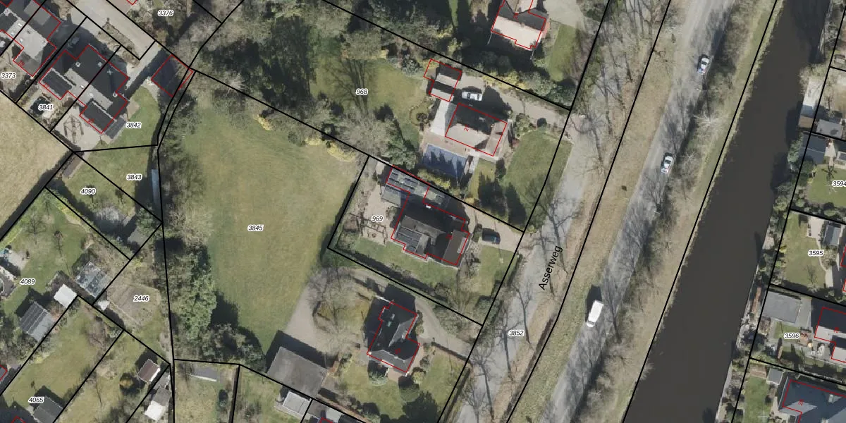 Het perceel waarop Asserweg 25 staat heeft een oppervlakte van 990 m². Dit is een groot perceel. De perceeloppervlakte wordt geregistreerd door het Kadaster. Gedetailleerde informatie over de maten van dit perceel kunt u vinden in het rapport Kadastrale kaart met maatvoering van Asserweg 25.