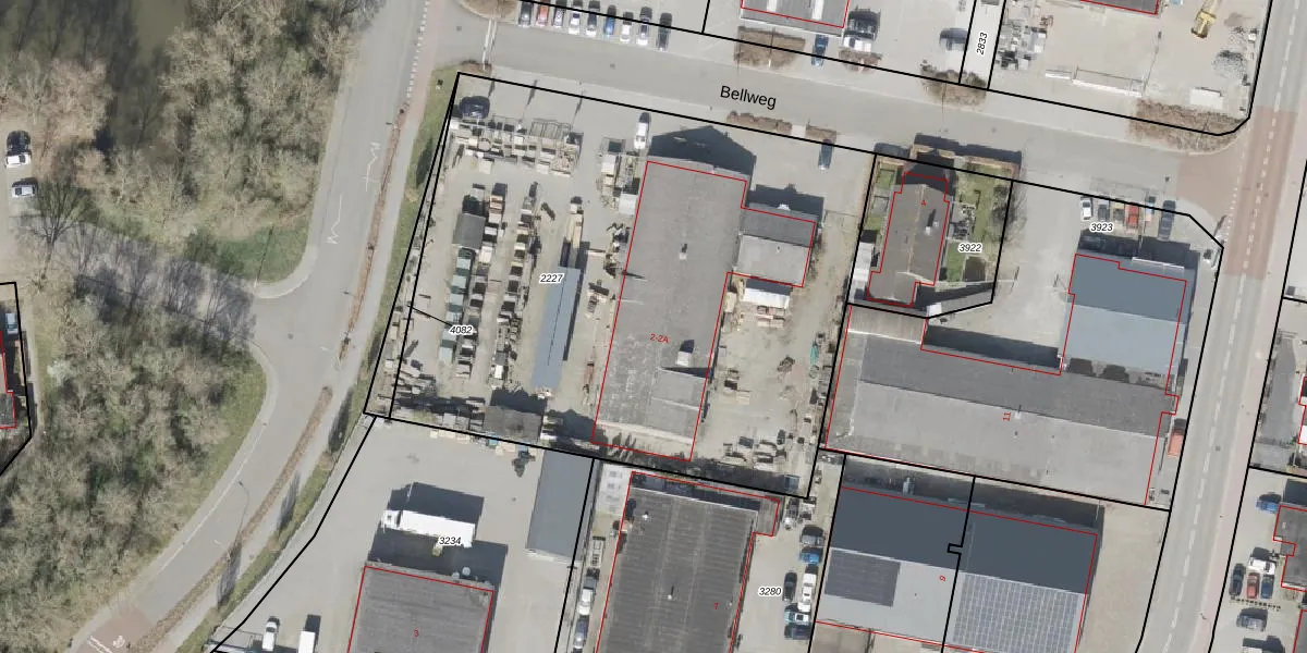 Het perceel waarop Bellweg 2 staat heeft een oppervlakte van 3505 m². Dit is een zeer groot perceel. De perceeloppervlakte wordt geregistreerd door het Kadaster. Gedetailleerde informatie over de maten van dit perceel kunt u vinden in het rapport Kadastrale kaart met maatvoering van Bellweg 2.