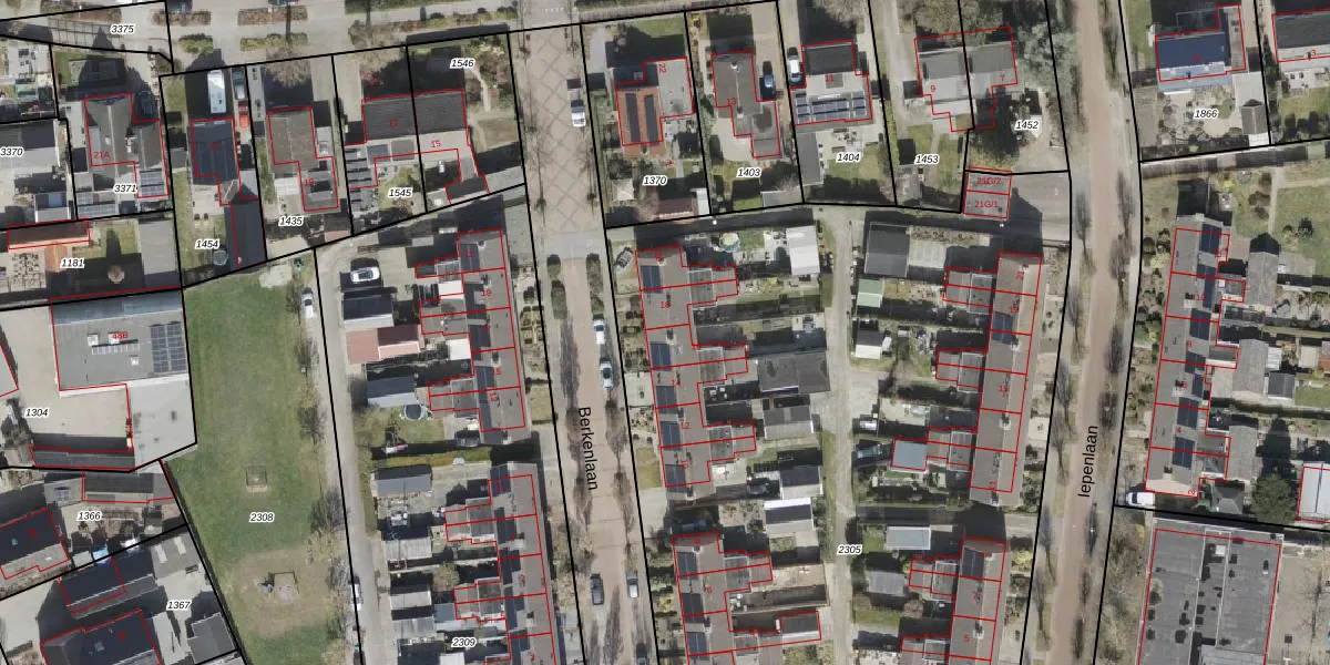 Het perceel waarop Berkenlaan 16 staat heeft een oppervlakte van 5965 m². Dit is een zeer groot perceel. De perceeloppervlakte wordt geregistreerd door het Kadaster. Gedetailleerde informatie over de maten van dit perceel kunt u vinden in het rapport Kadastrale kaart met maatvoering van Berkenlaan 16.