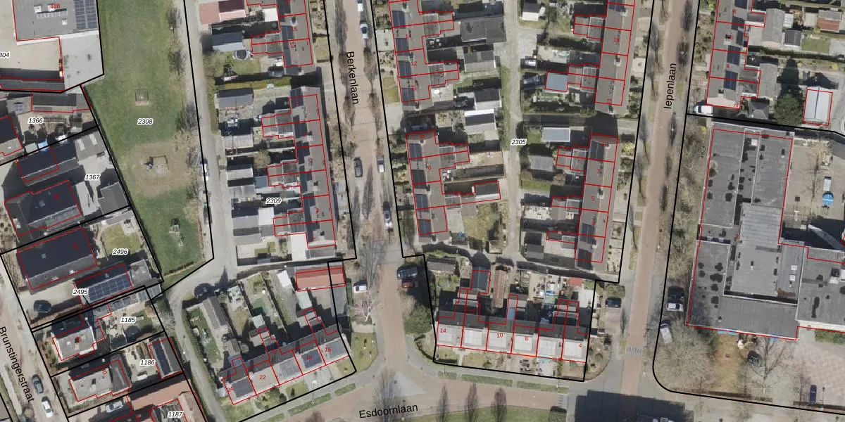 Het perceel waarop Berkenlaan 2 staat heeft een oppervlakte van 5965 m². Dit is een zeer groot perceel. De perceeloppervlakte wordt geregistreerd door het Kadaster. Gedetailleerde informatie over de maten van dit perceel kunt u vinden in het rapport Kadastrale kaart met maatvoering van Berkenlaan 2.