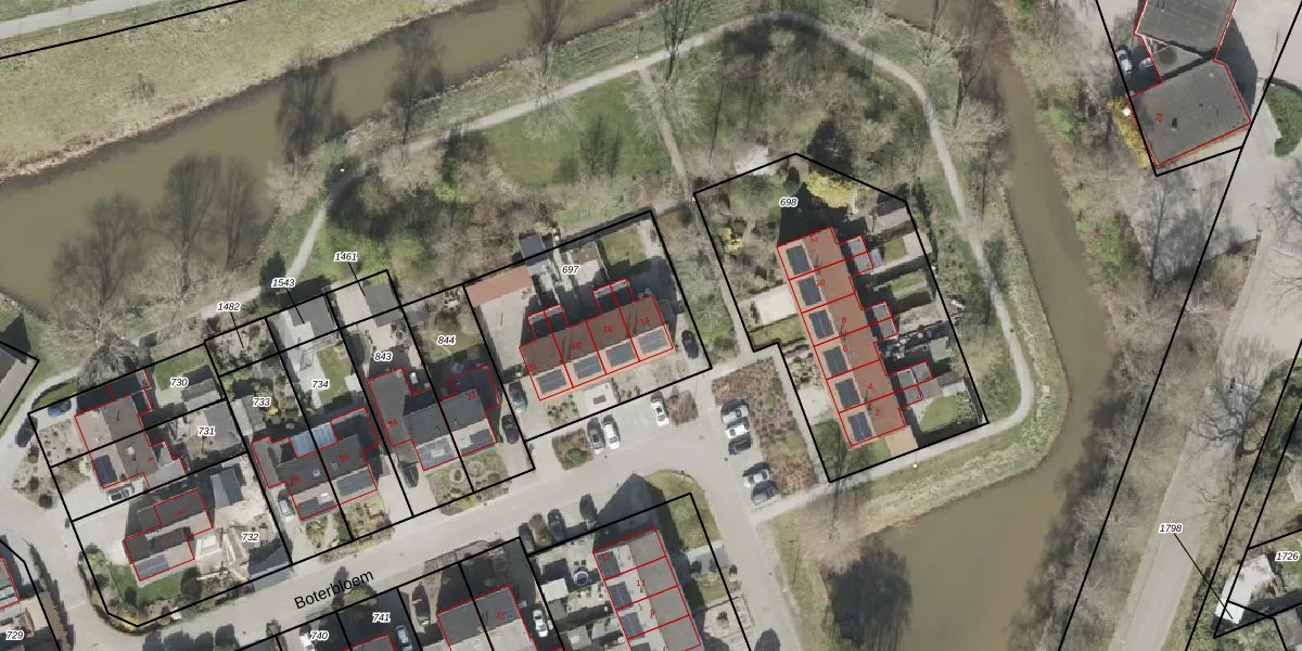 Boterbloem 14 is gelegen op kadastraal perceel BLN00V697. Deze kadastrale aanduiding is uniek en wordt gebruikt door het Kadaster om eigendomsrechten en andere zakelijke rechten vast te leggen. Het perceel maakt onderdeel uit van de kadastrale gemeente Beilen.