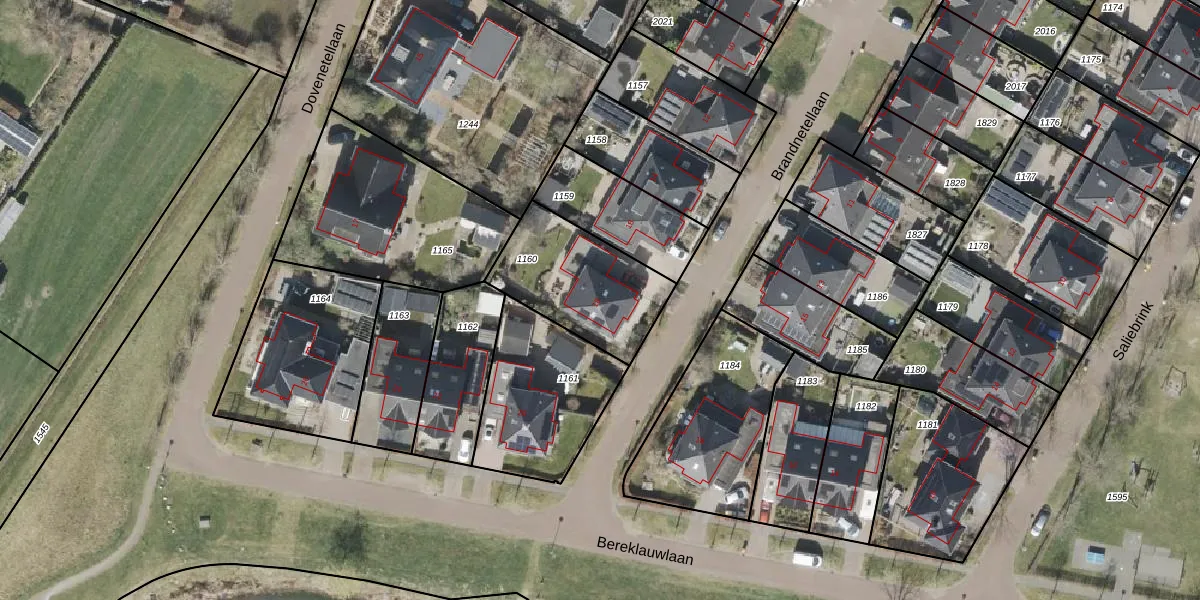 Gebruik de zoekbalk of klik op een perceel voor informatie over de adressen binnen dit perceel.