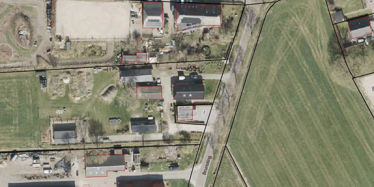 Het perceel waarop Brunsting 21 staat heeft een oppervlakte van 7635 m². Dit is een zeer groot perceel. De perceeloppervlakte wordt geregistreerd door het Kadaster. Gedetailleerde informatie over de maten van dit perceel kunt u vinden in het rapport Kadastrale kaart met maatvoering van Brunsting 21.