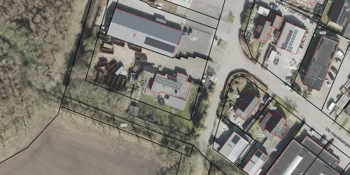 Het perceel waarop De Hanekampen 22 staat heeft een oppervlakte van 2067 m². Dit is een zeer groot perceel. De perceeloppervlakte wordt geregistreerd door het Kadaster. Gedetailleerde informatie over de maten van dit perceel kunt u vinden in het rapport Kadastrale kaart met maatvoering van De Hanekampen 22.