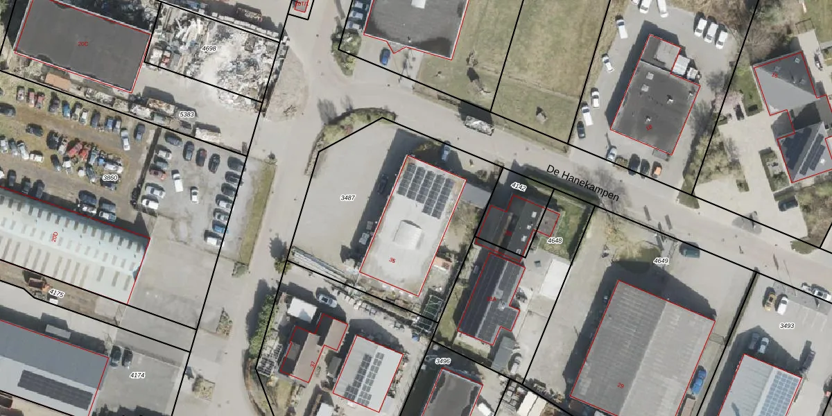 Gebruik de zoekbalk of klik op een perceel voor informatie over de adressen binnen dit perceel.