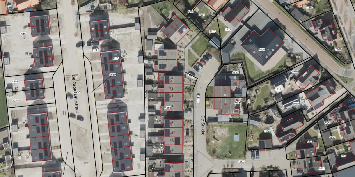 Het perceel waarop De Snikke 27 staat heeft een oppervlakte van 3144 m². Dit is een zeer groot perceel. De perceeloppervlakte wordt geregistreerd door het Kadaster. Gedetailleerde informatie over de maten van dit perceel kunt u vinden in het rapport Kadastrale kaart met maatvoering van De Snikke 27.