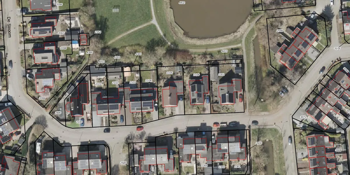 Het perceel waarop De Stroom 23 staat heeft een oppervlakte van 431 m². Dit is een groot perceel. De perceeloppervlakte wordt geregistreerd door het Kadaster. Gedetailleerde informatie over de maten van dit perceel kunt u vinden in het rapport Kadastrale kaart met maatvoering van De Stroom 23.