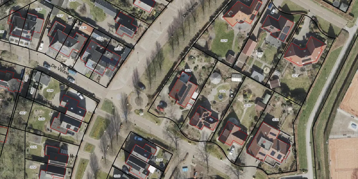 Het perceel waarop De Venne 26 staat heeft een oppervlakte van 810 m². Dit is een groot perceel. De perceeloppervlakte wordt geregistreerd door het Kadaster. Gedetailleerde informatie over de maten van dit perceel kunt u vinden in het rapport Kadastrale kaart met maatvoering van De Venne 26.