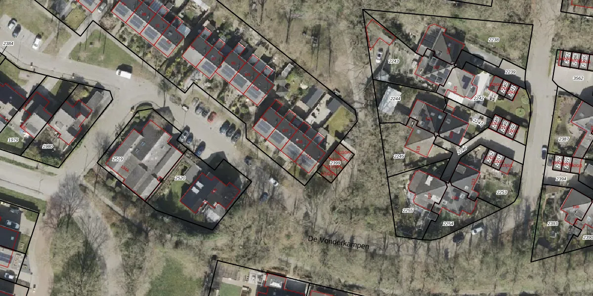 Het perceel waarop De Vonderkampen 109 staat heeft een oppervlakte van 6149 m². Dit is een zeer groot perceel. De perceeloppervlakte wordt geregistreerd door het Kadaster. Gedetailleerde informatie over de maten van dit perceel kunt u vinden in het rapport Kadastrale kaart met maatvoering van De Vonderkampen 109.
