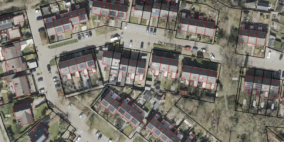 Gebruik de zoekbalk of klik op een perceel voor informatie over de adressen binnen dit perceel.