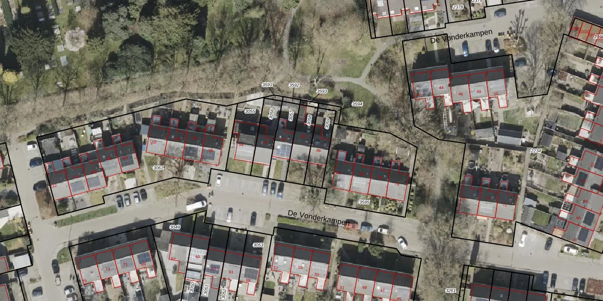 Het perceel waarop De Vonderkampen 88 staat heeft een oppervlakte van 157 m². Dit is een middelgroot perceel. De perceeloppervlakte wordt geregistreerd door het Kadaster. Gedetailleerde informatie over de maten van dit perceel kunt u vinden in het rapport Kadastrale kaart met maatvoering van De Vonderkampen 88.