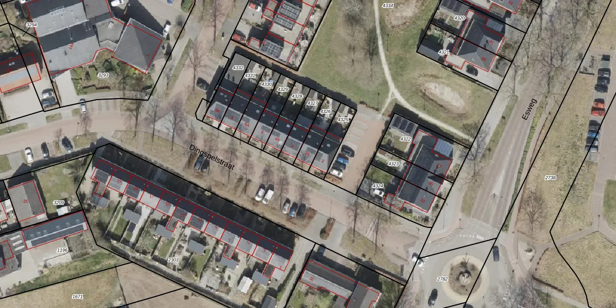 Dingspelstraat 2-A is gelegen op kadastraal perceel BLN00M4326. Deze kadastrale aanduiding is uniek en wordt gebruikt door het Kadaster om eigendomsrechten en andere zakelijke rechten vast te leggen. Het perceel maakt onderdeel uit van de kadastrale gemeente Beilen.