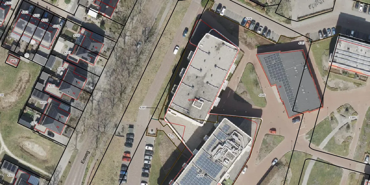Het perceel waarop Esweg 40-A-10 staat heeft een oppervlakte van 5491 m². Dit is een zeer groot perceel. De perceeloppervlakte wordt geregistreerd door het Kadaster. Gedetailleerde informatie over de maten van dit perceel kunt u vinden in het rapport Kadastrale kaart met maatvoering van Esweg 40-A-10.