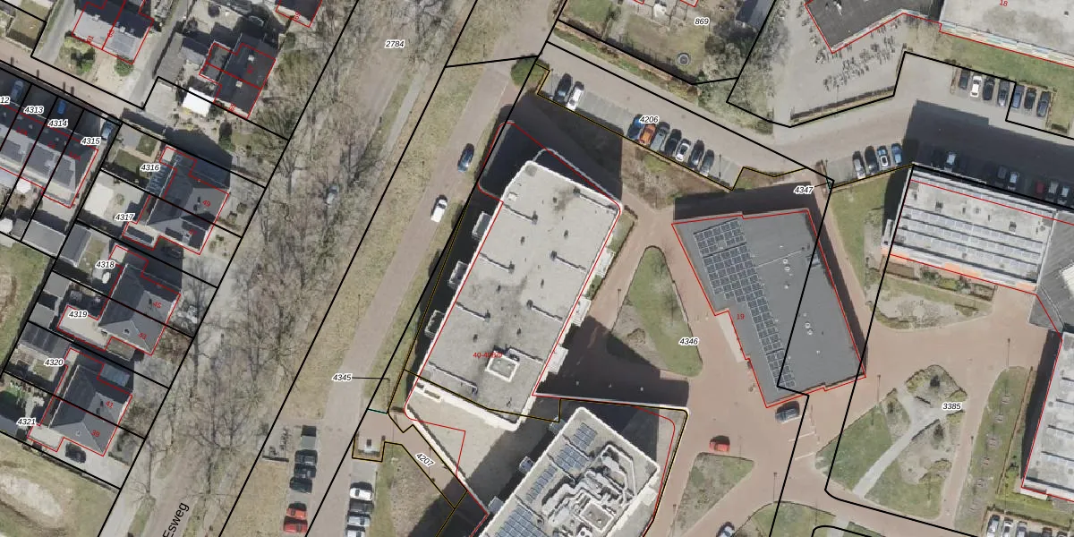 Het perceel waarop Esweg 40-A-108 staat heeft een oppervlakte van 5491 m². Dit is een zeer groot perceel. De perceeloppervlakte wordt geregistreerd door het Kadaster. Gedetailleerde informatie over de maten van dit perceel kunt u vinden in het rapport Kadastrale kaart met maatvoering van Esweg 40-A-108.