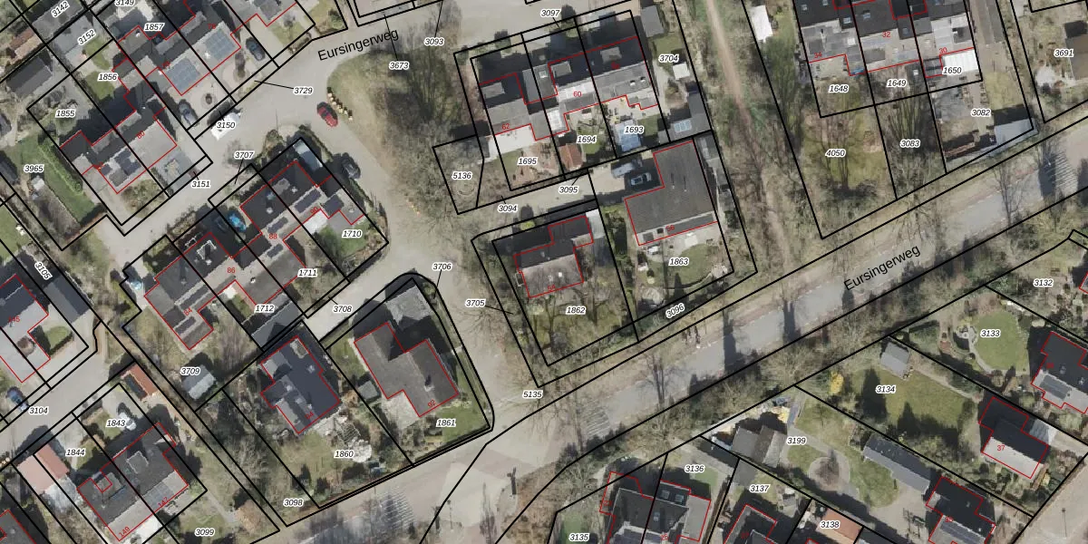 Eursingerweg 54 is gelegen op kadastraal perceel BLN00R1862. Deze kadastrale aanduiding is uniek en wordt gebruikt door het Kadaster om eigendomsrechten en andere zakelijke rechten vast te leggen. Het perceel maakt onderdeel uit van de kadastrale gemeente Beilen.