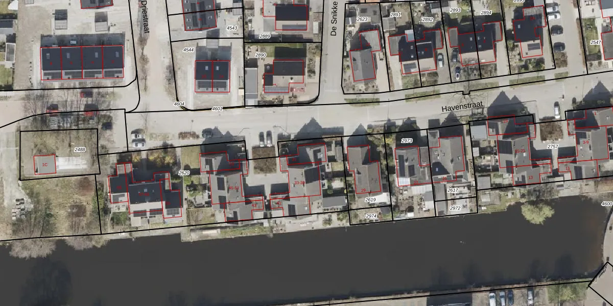 Het perceel waarop Havenstraat 31 staat heeft een oppervlakte van 1960 m². Dit is een zeer groot perceel. De perceeloppervlakte wordt geregistreerd door het Kadaster. Gedetailleerde informatie over de maten van dit perceel kunt u vinden in het rapport Kadastrale kaart met maatvoering van Havenstraat 31.