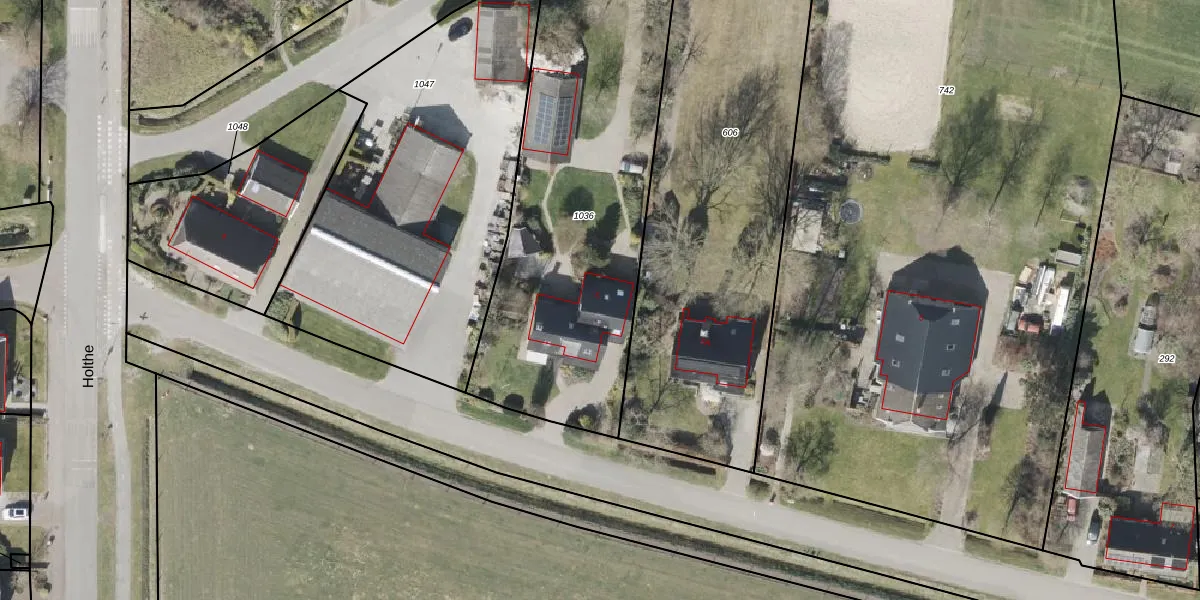 Het perceel waarop Holthe 5 staat heeft een oppervlakte van 1765 m². Dit is een zeer groot perceel. De perceeloppervlakte wordt geregistreerd door het Kadaster. Gedetailleerde informatie over de maten van dit perceel kunt u vinden in het rapport Kadastrale kaart met maatvoering van Holthe 5.